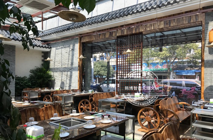 在這里吃火鍋不用擔心油煙味四處彌漫,因為揚之阿李火鍋店是一家智能無煙火鍋店,它選用了韓博智能無煙火鍋設備,吸油煙率高達99%,整個餐廳、包廂都無油煙味熏擾,只需盡情享受美景和享受佳肴。